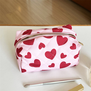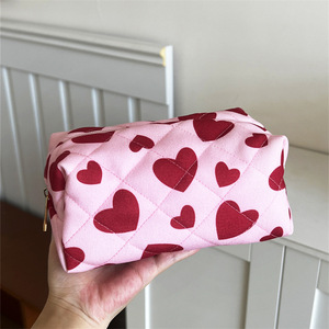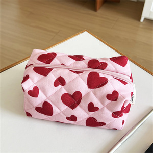 现货爱心化妆包笔袋口红收纳包洗漱包桃心棉质柔软大容量 包包