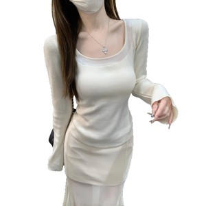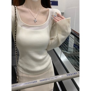 别致纯欲方领打底衫女内搭早春2025新款修身高级感长袖针织衫上衣