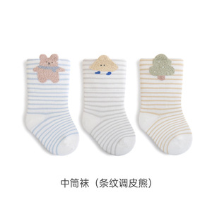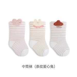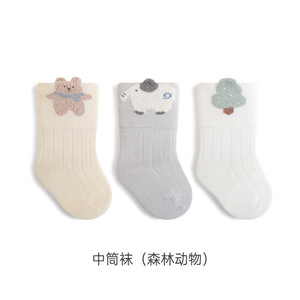 安旦新生婴儿袜子秋冬季宝宝中筒袜0-6月无骨婴幼儿初生男女童