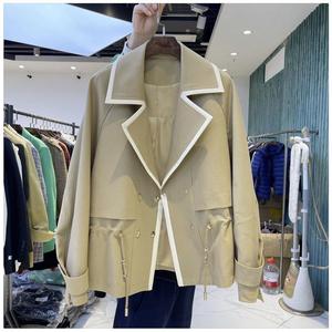 胖MM大码300斤欧洲站春秋季撞色短款风衣休闲简约百搭短外套女2