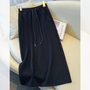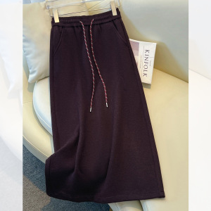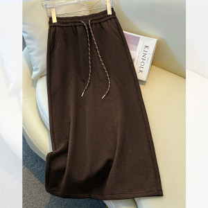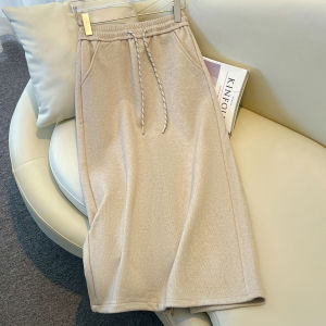 咖色毛呢半身裙秋冬女2025新款松紧抽绳巨好看包臀裙直筒a字裙子