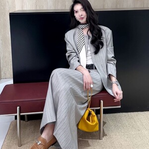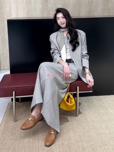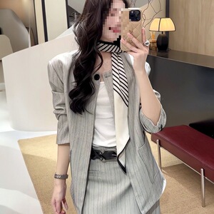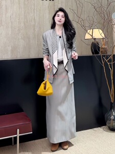 韩系气质灰色条纹西装套装女2025新款秋西服外套直筒半身裙两件套