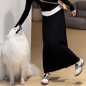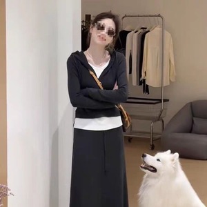 韩系感假两件连帽长袖T恤+半身裙两件套2025早秋新款套装女潮