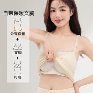秋衣秋裤双层加绒秋冬保暖背心女带胸罩一体 青少年保暖内衣套装