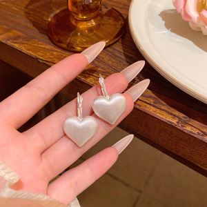 轻奢小众高级感哑光拉丝爱心耳扣耳环女个性冷淡风桃心耳钉耳饰品