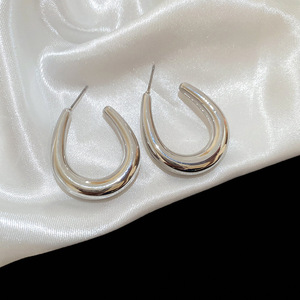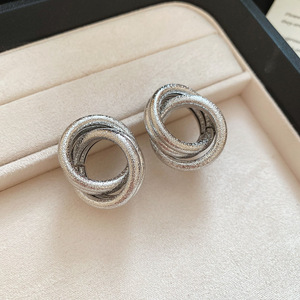 银针圆圈银色耳环轻奢高级感耳钉女冷淡风时尚百搭耳饰设计感小众