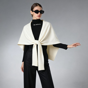 她信跨境纯色秋冬小众设计斗篷披风针织开衫式披肩外塔女