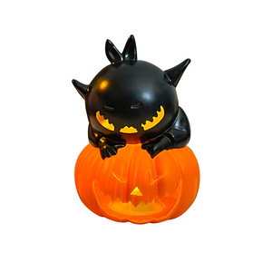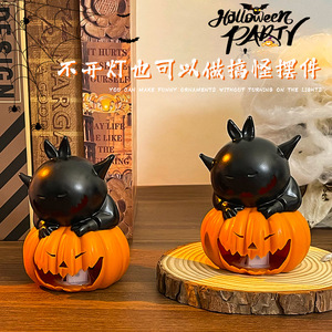 跨境新款万圣节南瓜背猫摆件led装饰灯搞怪派对用品场景布置道具