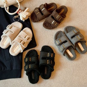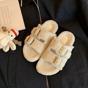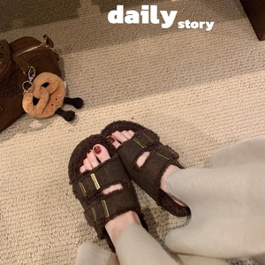 懒人双扣带外穿百搭厚底毛毛拖鞋女秋冬外穿韩版丑萌一脚蹬勃肯鞋