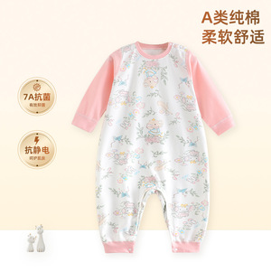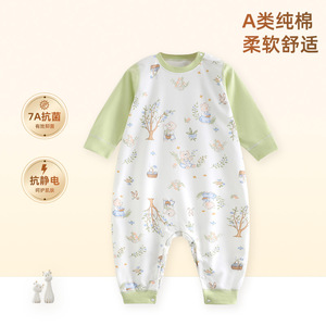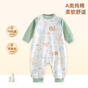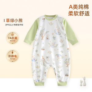 儿童连体睡衣宝宝春秋款纯棉分腿睡袋男女童家居服四季防踢被爬服