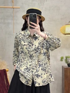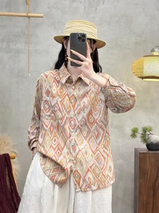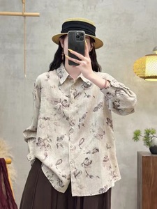 2025秋季新款复古亚麻雨露衬衫女翻领长袖宽松单排扣衬衣上衣