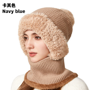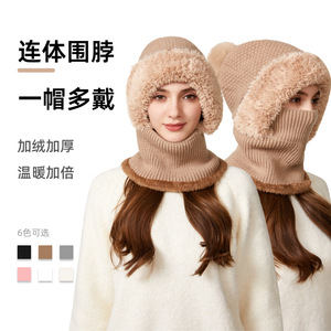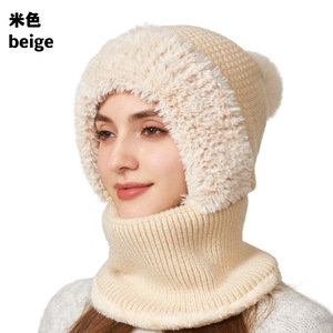 跨境针织帽加厚加绒大头围帽子口罩高弹力保暖帽帽子秋冬女保暖