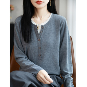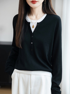 撞色假两件套头针织衫女2025秋季新款韩系设计感甜美风打底毛衣女
