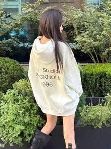 AC 做旧LOGO字母印花连帽卫衣女 男女高街秋冬套头扎染印花帽衫批