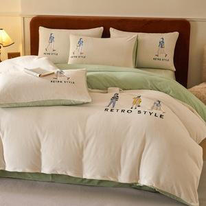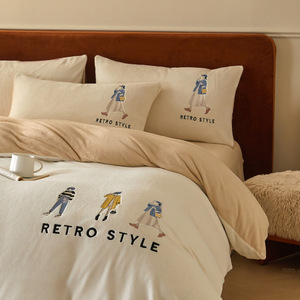 秋冬新款牛奶绒四件套刺绣感加厚床单被套单双人简约裸睡床上用品