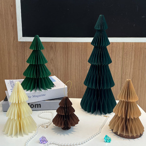 新款圣诞折纸圣诞节装饰品蜂窝圣诞树桌面摆件折叠迷你圣诞树布置