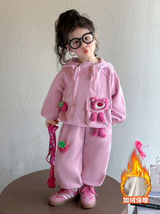女童加绒加厚套装秋冬装新儿童洋气网红宝宝草莓熊卫衣冬季两件套