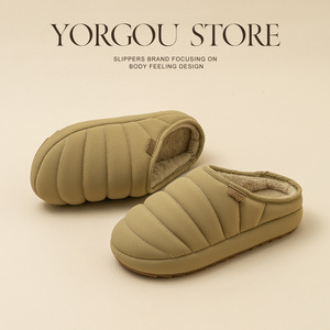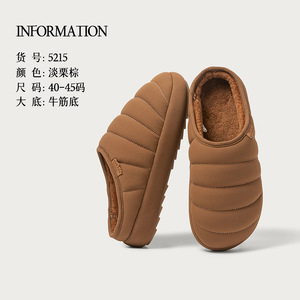 远港牛筋底棉拖鞋女秋冬季室内家用保暖加绒居家办公室毛绒拖鞋男