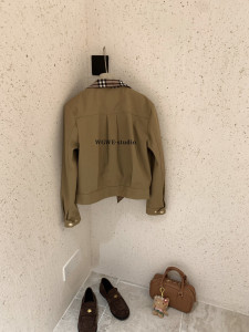 WGWE韩版复古格子拼接翻领百搭休闲夹克女小个子春秋短外套W7068