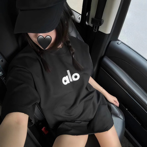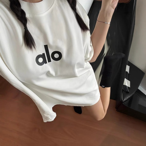 25夏季ALO基础款短袖T恤女宽松T恤圆领显瘦慵懒纯色百搭休闲上衣