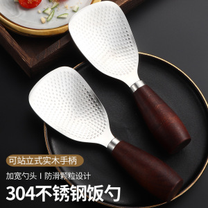 居家日用加厚木柄不锈钢饭勺米饭铲子家用可立式木柄家用勺子盛饭