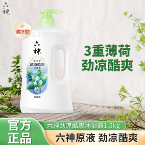 六神沐浴露持久留香清凉爽肤绿茶甘草1.5L大容量沐浴乳液男女家庭