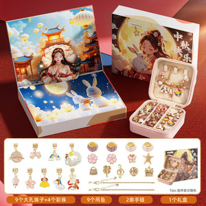 中秋节儿童盲盒戳戳乐女孩生日礼物DIY手链公主礼盒手工串珠玩具