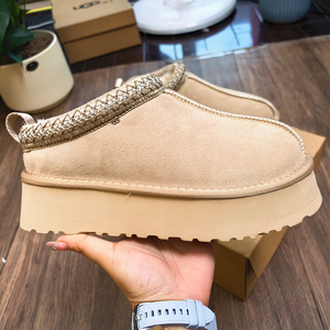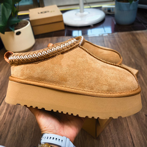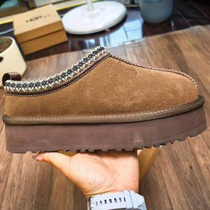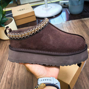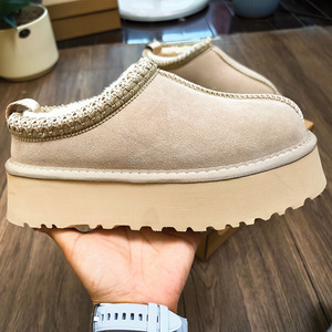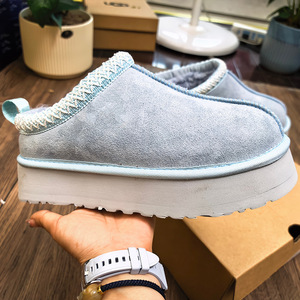 冬季桑坡新款民族风雪地靴女厚底塔茨TAZZ懒人便鞋低帮羊皮毛一体
