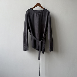 言双 复古圆领系带休闲衬衣女 秋季百搭长袖收腰显瘦上衣82627