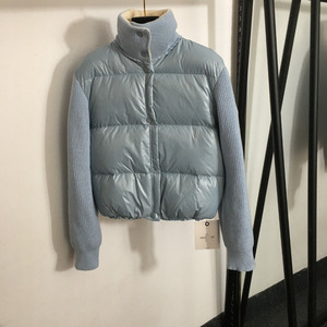 2025侧边logo徽章针织拼接立领长袖羽绒服显瘦外套90%白鹅绒填充