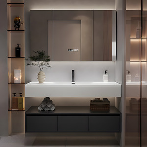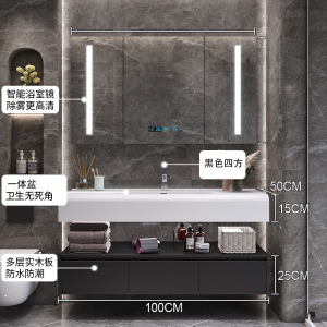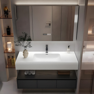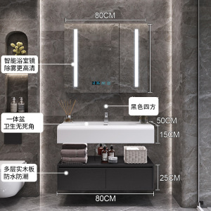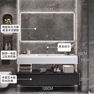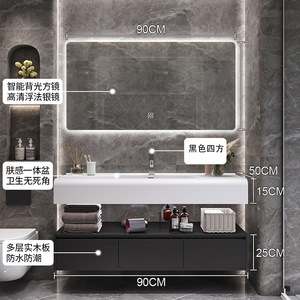 高端琦美石一体盆实木浴室柜洗漱池组合洗手洗脸台卫浴柜萧山卫浴