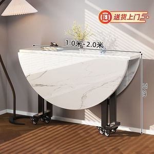 折叠桌餐桌家用小户型吃饭桌子出租房简易饭桌现代简约10人大圆桌