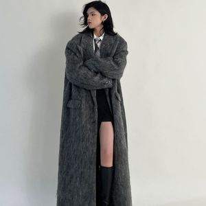 法式感赫本风灰色气质慵懒阔版韩系加长毛毛呢子大衣外套女冬