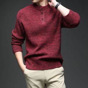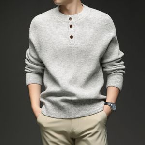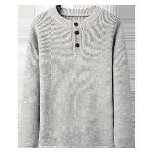 三粒扣圆领加厚保暖彩纱针织衫毛衣男式秋冬季潮流宽松打底羊毛衫