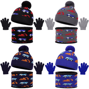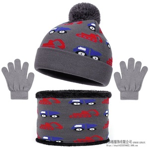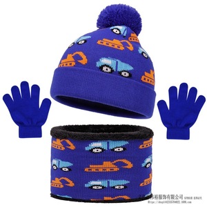 跨境亚马逊秋冬新款毛线帽儿童挖机手套帽子围脖三件套