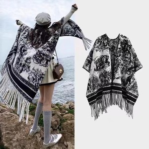 秋冬新款水墨画复古时尚高级感披肩外搭女仿羊绒加厚保暖披风围巾