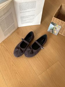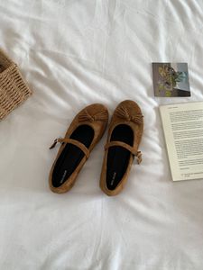 复古圆头玛丽珍女鞋子2025年春秋季新款浅口蝴蝶结一字带低跟单鞋