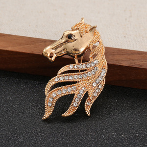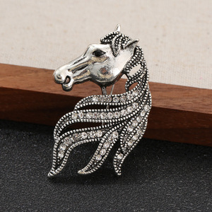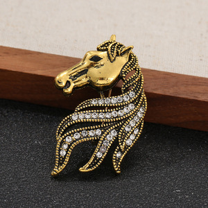 复古做旧气质马年高档镶钻胸针生肖马头小众个性服饰别针胸花配饰