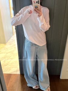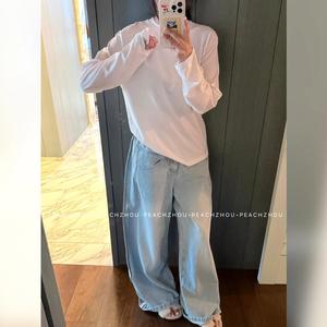 3761# 『PEACHZHOU』秋天软到心里的舒适打底弹力圆领长袖T恤