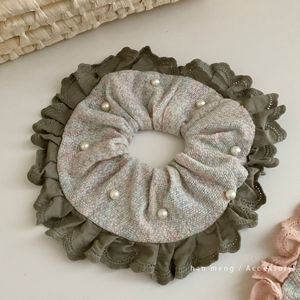 法式新款公主风精致珍珠蕾丝边大肠发圈高颜值气质甜美百搭发饰