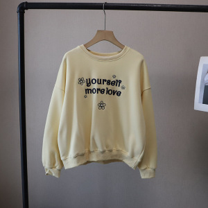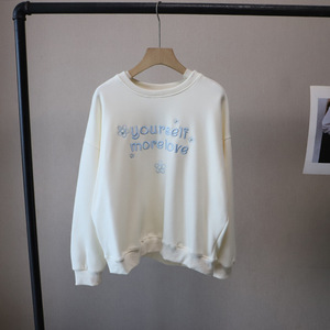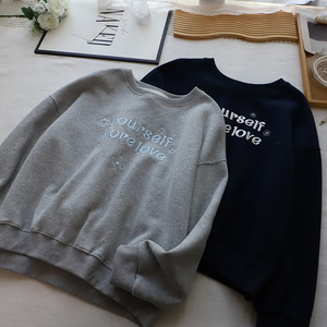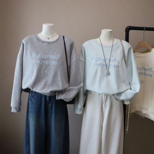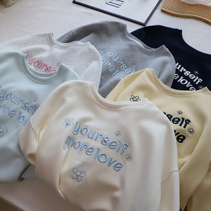 [比正]2025秋冬新款韩版圆领字母刺绣钉珠时尚宽松显瘦卫衣女5003
