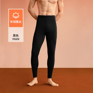 新款羽绒蚕丝秋裤男款发热羊毛贴片护膝冬季打底男士无痕保暖线裤