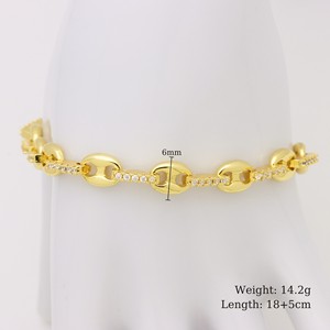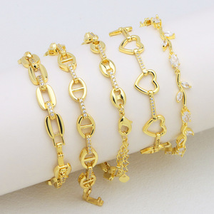 保色电镀18K真金镶锆镂空设计心形爱心猪鼻孔O字时尚款手环手链女