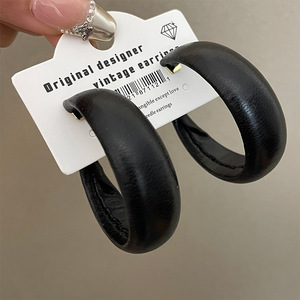 秋冬新款美拉德咖色PU皮质耳圈耳环2025年新款潮大圆圈耳饰奶茶色