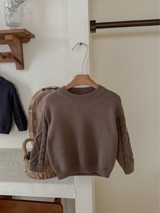 纯棉儿童毛衣春秋男童韩版麻花针织外套纯色圆领中小童复古上衣潮