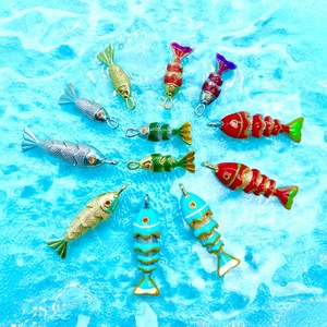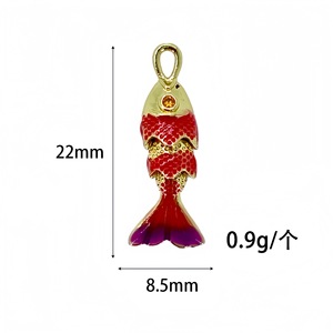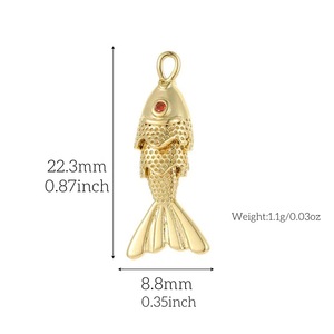 跨境欧美小鱼锦鲤铜镀金保色可摆动吊坠DIY材料项链耳饰配件配件