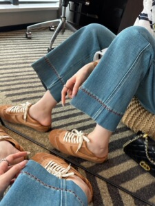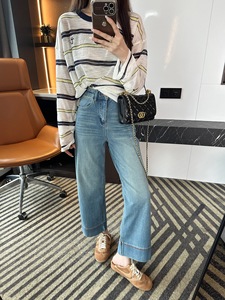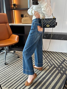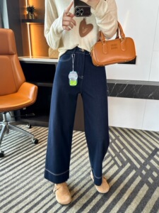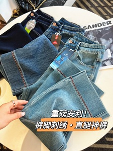 刺绣重工!闭眼入!四面弹宽边奶奶裤女新秋宽松阔腿小个子牛仔裤