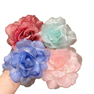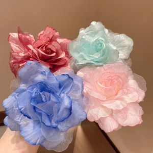 大号超仙玫瑰花边夹渐变色立体绢纱布艺花朵发夹氛围感海边旅出片