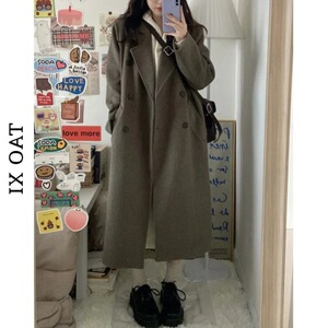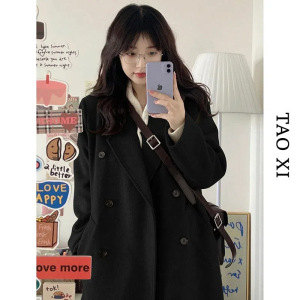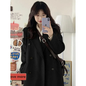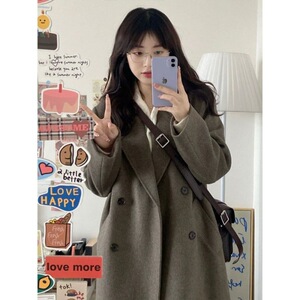 韩系温柔风呢子大衣女2025秋冬小个子双排扣毛呢外套赫本风大衣