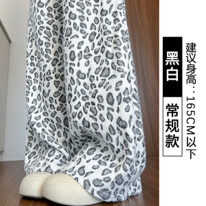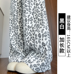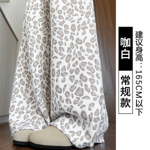 豹纹软糯阔腿裤女春秋季2025新款高腰显瘦休闲裤垂感小个子糯米裤